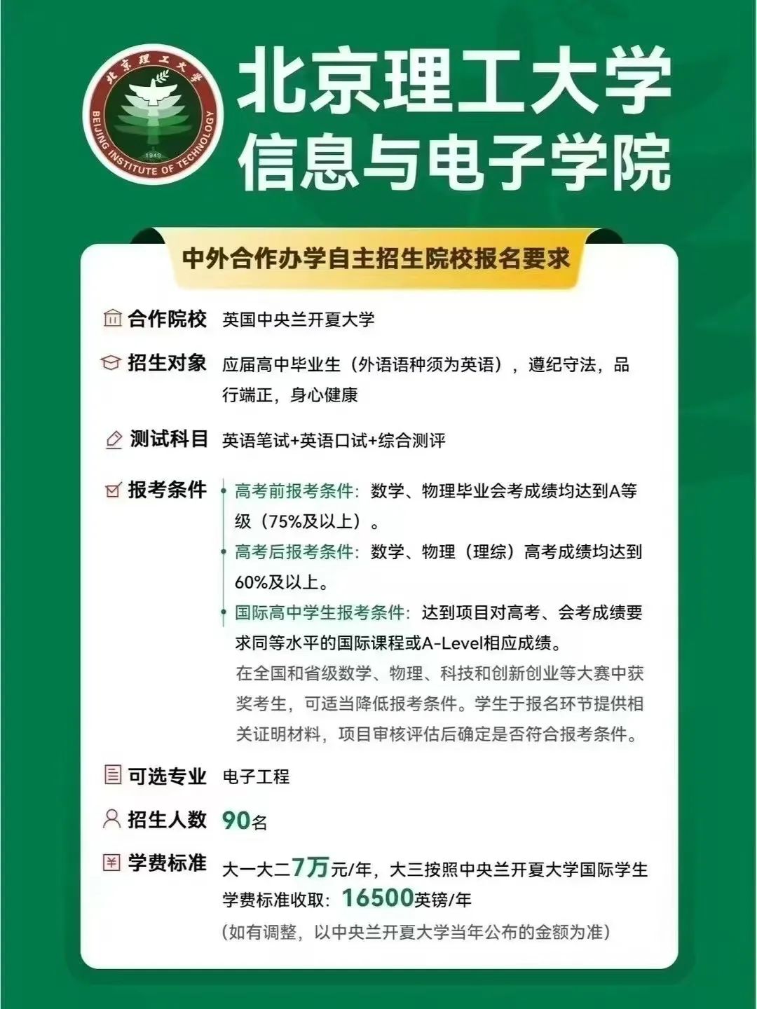 ✅ 硬核背景:北理工科强校背书,对接英国百年名校,电子工程专业直接瞄准前沿科技领域,未来就业/深造buff叠满!